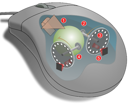 Позже два диска были заменены шариком, который при движении мыши вращал два ролика внутри неё.