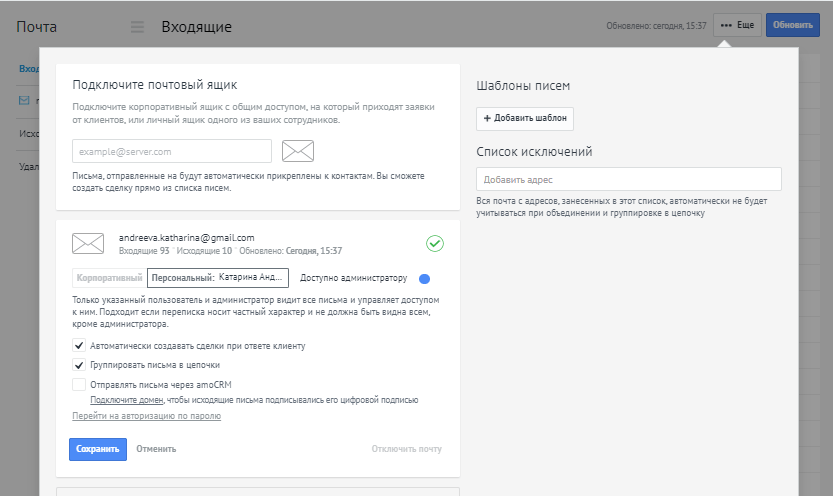 Внедрение crm: Интеграция почты c amocrm