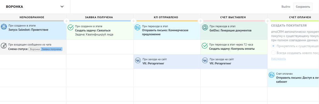Настройка воронки продаж