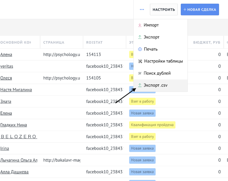 Лиды, контакты, компании, сделки