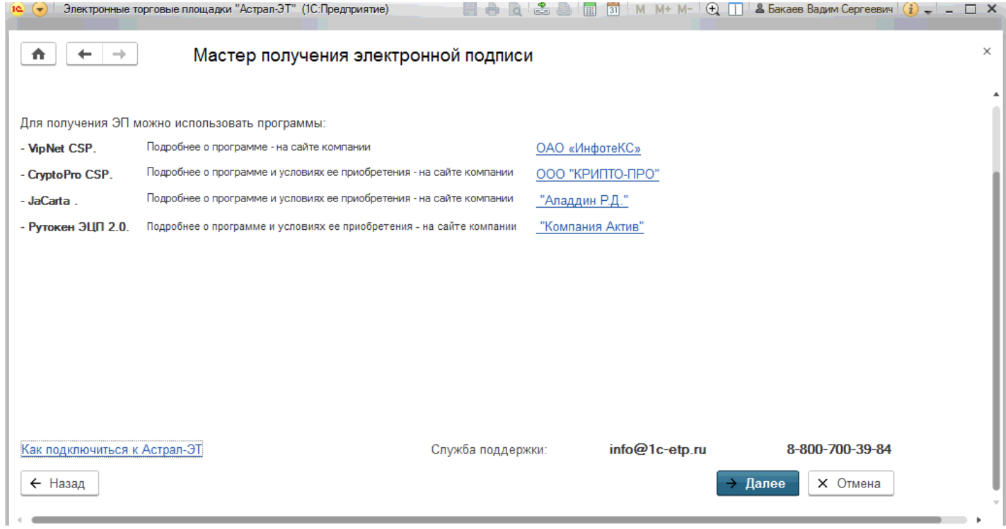 На данном шаге нужно скачать программу для Windows Astral Toolbox. После её запуска и обновления на вашем ПК, в форме на данном шаге система автоматически определит ваш криптопровайдер.