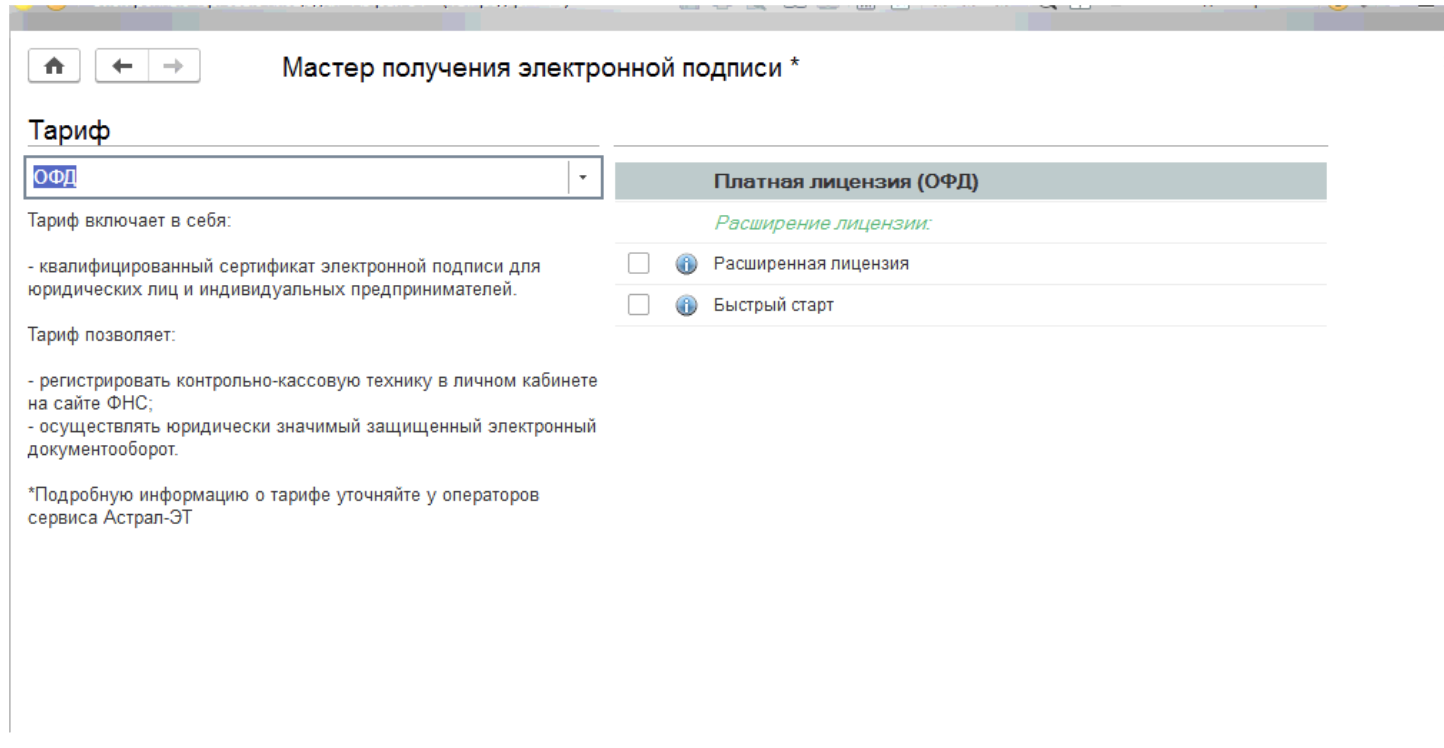 Выбрать тариф «ОФД» за 900 руб. Дополнительные галочки не ставить.