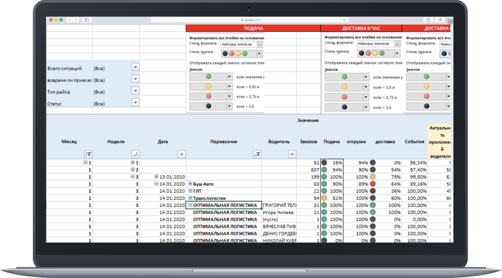 Создание своих критериев доставки (время прибытия в РЦ, попадание в окно отгрузки, попадание в интервал доставки к клиенту)