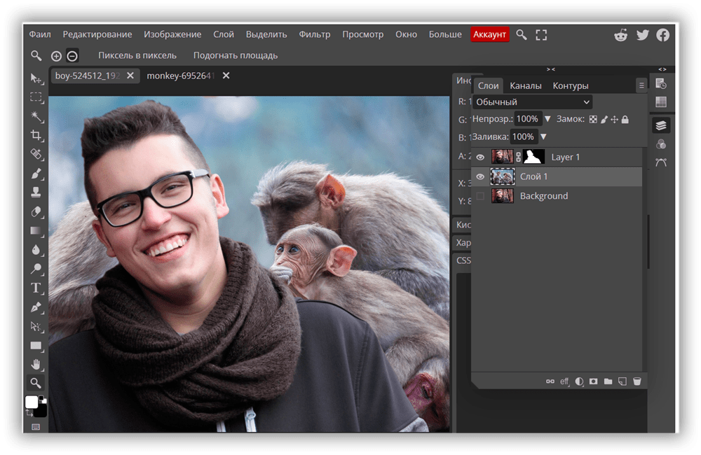 Я выбрал для примера свое фото, на нем мы будем удалять фон. И потом вставим его на фото с забавными обезьянками.