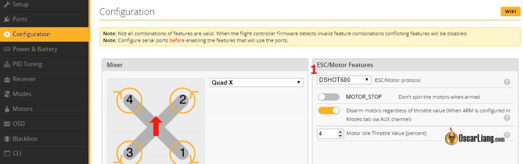 ESC_SENSOR — используется для включения телеметрии, если на ваших регуляторах для этого используется отдельный сигнальный провод.