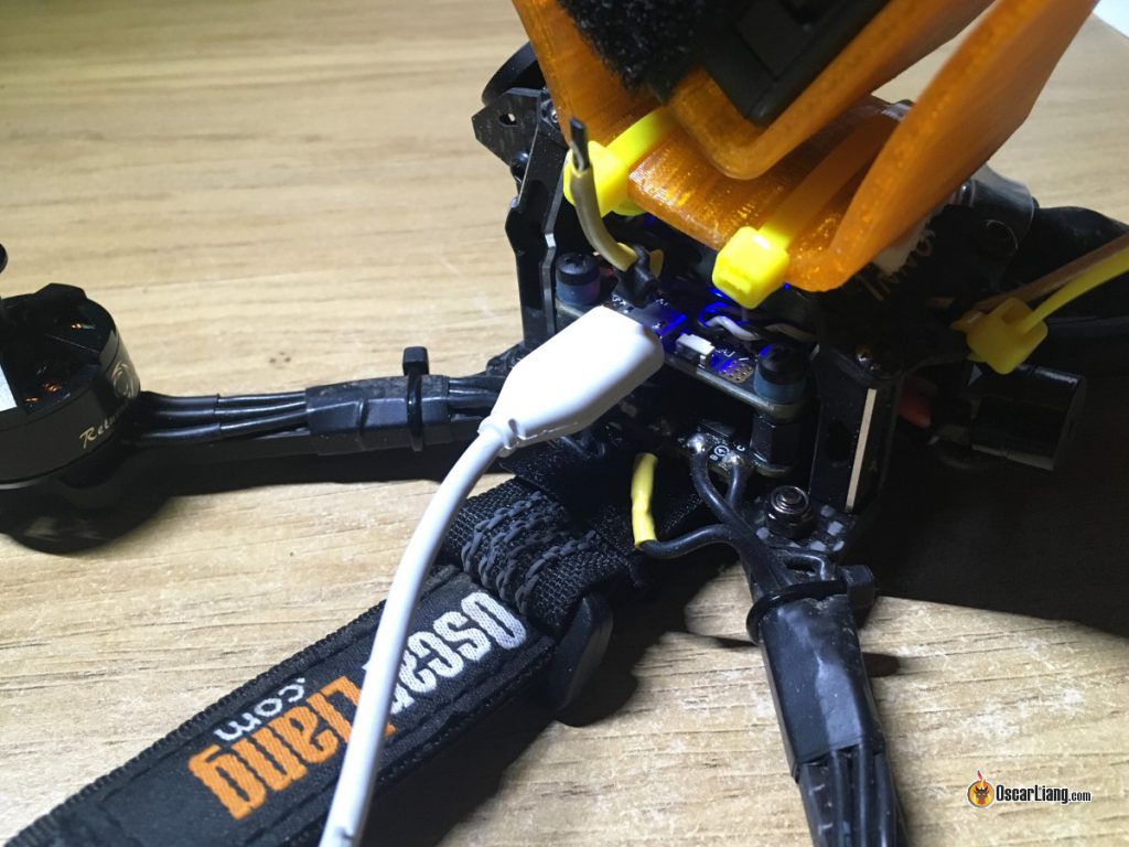 Подключенный MicroUSB кабель питает полетный контроллер.
