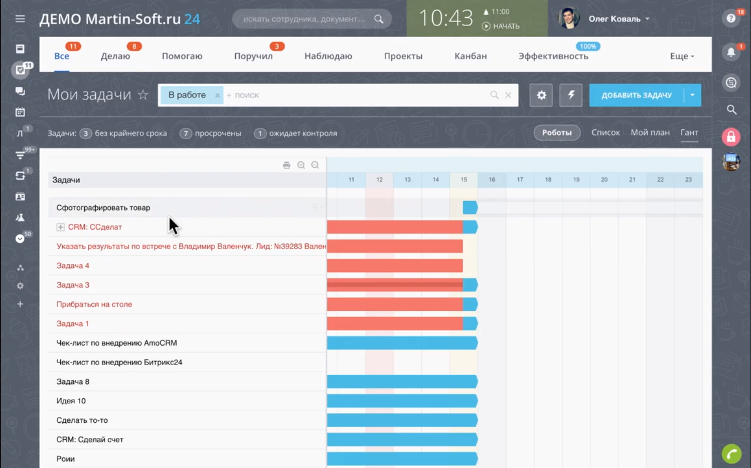 ✔ позволяет оценить эффективность работы каждого отдельного работника (чем больше несвоевременно выполненных задач, тем ниже процент эффективности)