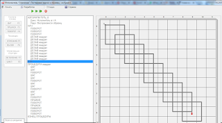 Кроме простых команд, здесь пользователю будут доступны и более сложные алгоритмы. В этом режиме также доступна поочередная запись команд. От человека требуется задать программе определенное действие, которое немедленно будет выполнено стрелочкой. После записи результатов на соответствующем поле система подводит пользователя к последующей записи данных.