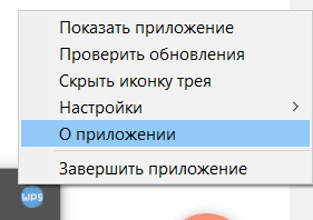 — «О приложении» — отображает версию WPS.