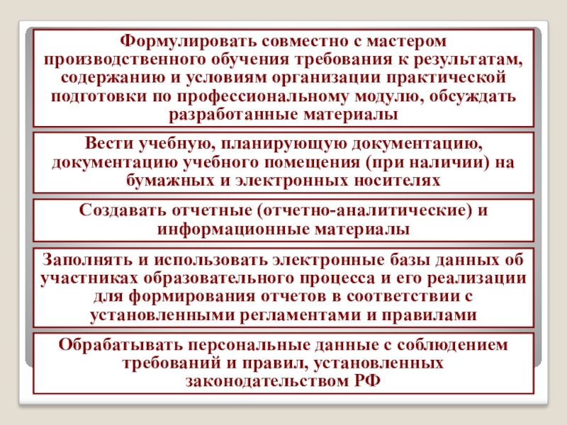 Слайд 14Формулировать совместно с мастером производственного обучения требования к результатам, содержанию и