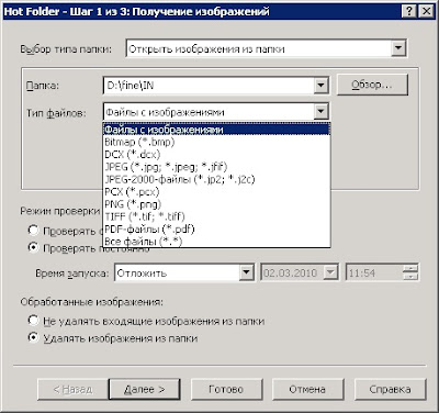 - Я имею в виду, что в целом связка РАБОТАЕТ и к Доцеро как таковой претензий нет. Цикл выполняется и результат верный, но сама HotFolder видя полученные в результате собственной деятельности файлы начинает их распознавать и матюкается, что это не изображения. Следовательно нужно ограничить HotFolder анализом только изображений, чтобы она не спадала в ступор при наличии в каталоге других файлов.