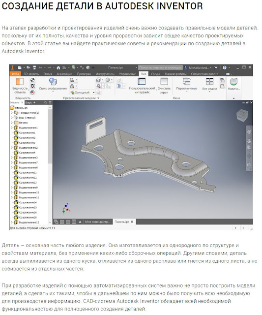 Creating complex 3D models. Autodesk Inventor allows attributing knowledge content to an electronic model providing the engineers with tools for flexible adjustment of their internal parametric structure and creating the only point to control the whole model. By the way, models created in this program look great printed on 3D printers.