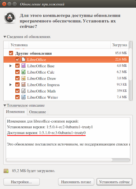 Установка LibreOffice 5.1.0 в Ubuntu 15.10/15.04/14.04 и производные