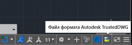 При открывании файла DWG AutoCAD проверяет файл на соответствие формату TrustedDWG и выдает сообщение, что файл действительно создан в программах AutoCAD или программах на его основе и в статусной строке появляется соответствующий значок Файл формата Autodesk TrustedDWG. Если же файл был создан или сохранен в сторонней программе, то система предупредит пользователя о возможных ошибках в файле, несовместимости и потери целостности данных