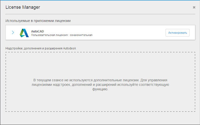 Сам Менеджер лицензий вызывается из меню инфоцентра и позволяет отслеживать и управлять лицензией как на сам продукт, так и на все установленные расширения и дополнения