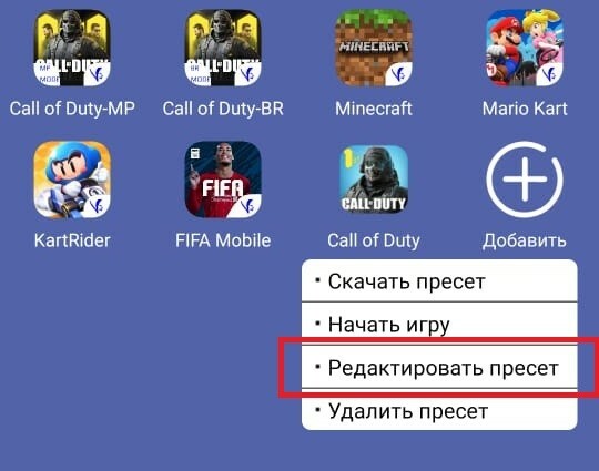 6. После того, как игра запущена, сверните её и перейдите в приложение Shootingplus V3. Снова нажмите на иконку игры и выберите пункт «Редактировать пресет»;