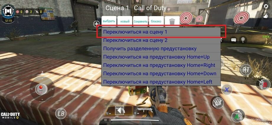 10. Выберите пункт «Переключиться на сцену 1» — главный экран управления персонажем. Именно на этой вкладке Вам необходимо указать функции кнопок геймпада. Обратите внимание! Если пункта «сцена один» нет, опустите этот шаг и переходите к п.11, просто начав расставлять кнопки и потом нажмите «Сохранить»;