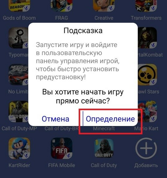 7. Приложение предложит Вам определить настройки непосредственно в самой игре. Выберите пункт «Определение». При этом откроется запущенная ранее игра;