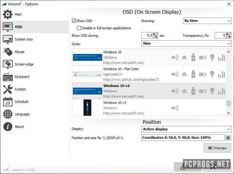 - Замена стандартного индикатора громкости, вызываемого при использовании мультимедийных клавиш на клавиатуре (не путать с пикметром). В программе Volume2 предусмотрено множество красочных скинов для индикаторов звука со своими собственными настройками.