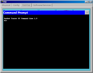 Далее проверим, как применились введенные нами настройки. Для этого опять дважды щелкнем левой кнопкой мыши по одному их хостов, например по PC 0. В открывшемся окне выбираем пункт Command Prompt и попадаем в окно консоли данного компьютера (данное действие аналогично тому, как если бы мы выполнили Пуск-Выполнить- cmd на реальном компьютере).