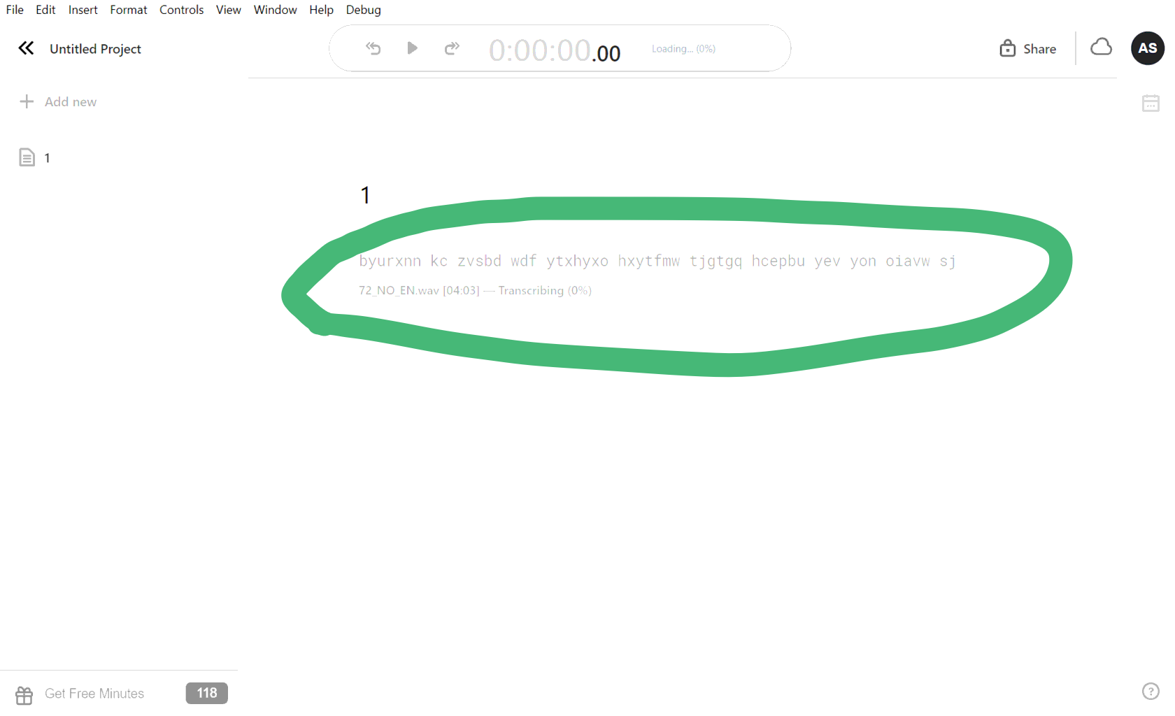 Ждем несколько секунд. Процесс расшифровки (transcribing) пошел.