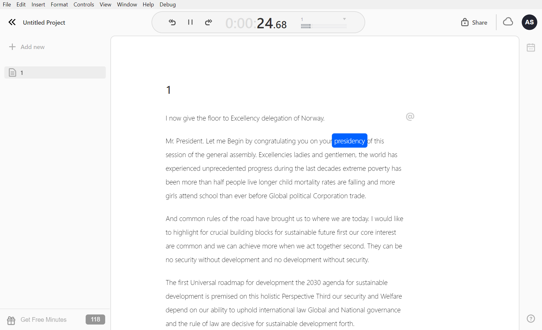 Для теста я взял выступление в ООН: gadebate.un.org/en/72/norway