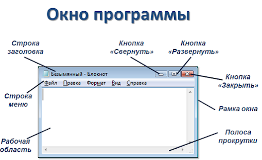 После того как программа открылась на рабочем столе можно увидеть окно программы. Рассмотри рис.3 и запомни основные элементы окна программы.