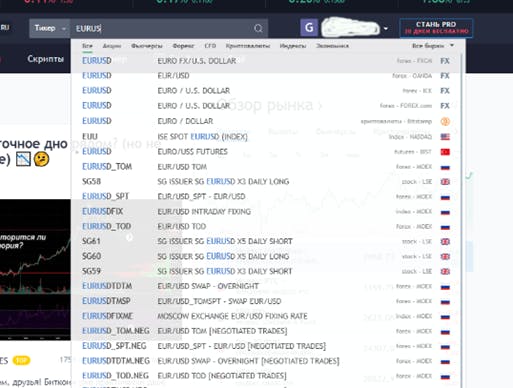 Чат платформы Трейдингвью удобен тем, что в нем есть разделения на определенные рынки или инструменты: