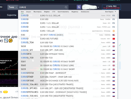 На платформе TradingView можно смотреть и анализировать графики почти любых торговых инструментов, которые существуют в мире. Для этого нужный инструмент можно добавить в свой список или просто найти его в поиске:
