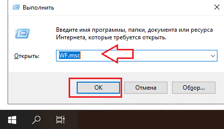 Для разрешения беспрепятственной работы порта придется выполнить иные манипуляции. Понадобится открыть сервис в режиме усиленной безопасности. Он открывается только через поиск программ, где нужно вписать wf.msc и выбрать программу или в меню брандмауэра выбрать «Дополнительные параметры».