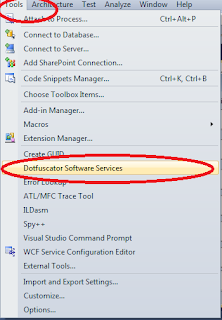 Допустим, у нас есть какой то проект, возьмем мой — FormulaToTruthTable. Для того, чтобы начать, зайдем в Tools->Dotfuscator Software Services.