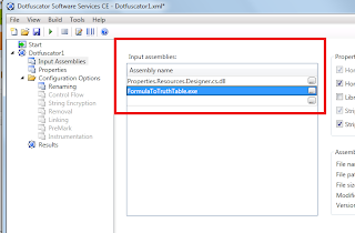 Теперь правой клавишей по Dotfuscator1->Add Assemblies. Добавляем все .exe .dll файлы из проекта. В моем случае у меня 2 файла (выберите Input Assemblies в дереве для просмотра):