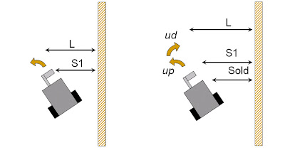 В этом случае, робот будет стараться приблизиться к стене, увеличивая угол между сенсором и стеной, что только будет усугублять ситуацию.