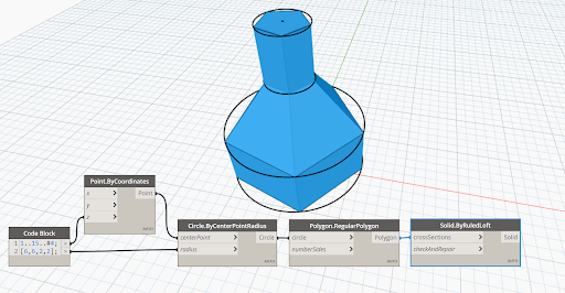 Система Dynamo поддерживает собственный язык программирования Design Script, кодить на котором возможно внутри универсального нода Code Block. С помощью такой записи алгоритма можно сделать программу более эффективной.