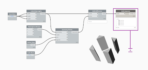 Для работы с геометрией были добавлены три новых геометрических ноды: PolyCurve.ByThickeningCurveNormal, Solid.ByRuledLoft и Solid.Separate.
