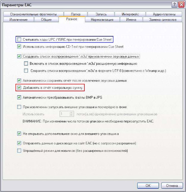 Настройка программы Exact Audio Copy для снятия точного рипа