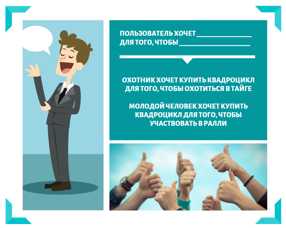 Пример примитивный, но сразу понятно, что охотнику и молодому человеку нужны разные квадроциклы. И продавец-консультант в магазине вряд ли порекомендует таким клиентам одну и ту же модель.