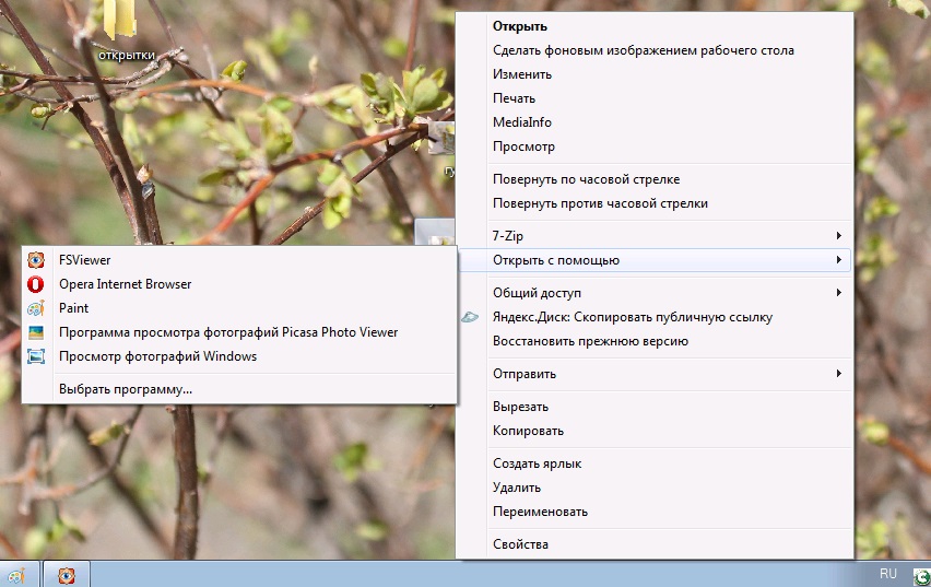 Если вы просматриваете папку с фотографиями не в FastStone, но хотите туда перейти, нужно сделать следующее: навести курсор на нужный файл, правой кнопкой мыши вызвать контекстное меню, вот такая картина при этом вам откроется.