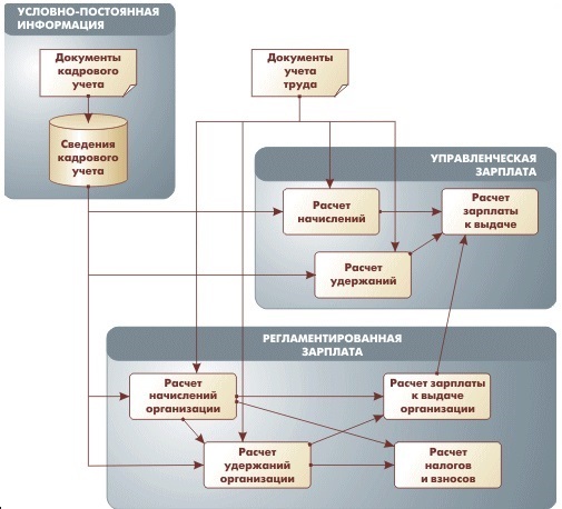 Формирование регламентированной отчетности осуществляется на основании результатов учета доходов, сумм налогов и взносов. В частности, под регламентированной отчетностью подразумеваются такие документы, как расчетная ведомость, отчеты в Пенсионный фонд России, при необходимости — в Фонд социального страхования, а также месячная и квартальная формы отчета по труду.