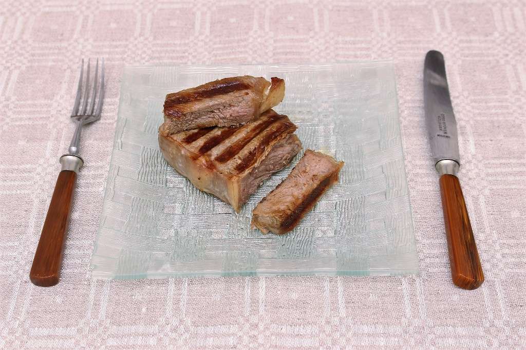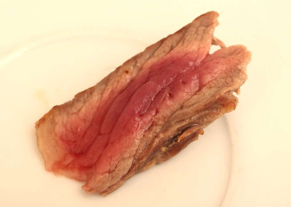 Оба куска сочные. Никаких «прижаренностей» от специй на поверхности. OptiGrill действительно определил толщину кусков и потратил на их приготовление меньше времени чем на стейк