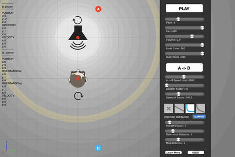 Буфер в OpenAL используется для корректной смены динамических данных и установки новых показателей как для объекта, производящее звук, так и для слушающего субъекта. Все данные отражаются на рабочем поле программы в центре. Данные, которые изменяет пользователь, выведены на боковой панели. При работе с другими языками программирования все данные вводятся и сохраняются в виде кода.