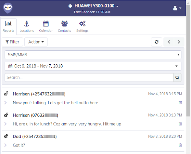 С помощью функции отслеживания SMS родители могут видеть все MMS и SMS сообщения, отправленные и полученные пользователем.