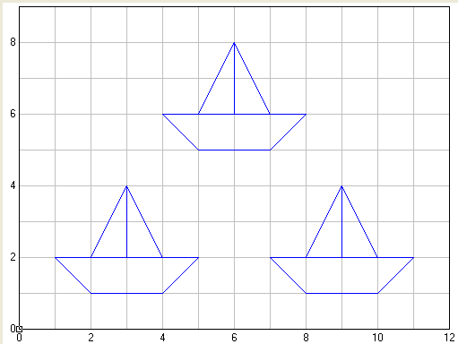 program Elka; uses Drawman; procedure Triangle; begin PenDown; OnVector(3, 2); OnVector(3, -2); OnVector(-6, 0); PenUp; end; begin Field(9, 9); ToPoint(1, 1); Triangle; ToPoint(1, 3); Triangle; ToPoint(1, 5); Triangle; ToPoint(0, 0); end.