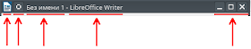 - Иконка приложения — LibreOffice Writer, это же меню окна.