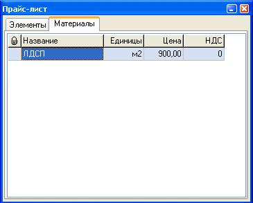 В открывшемся окне «Прайс-лист» есть две закладки — «Элементы» и «Материалы». Сейчас нас интересует закладка «Материалы», а с закладкой «Элементы» мы чуть позже разберёмся.