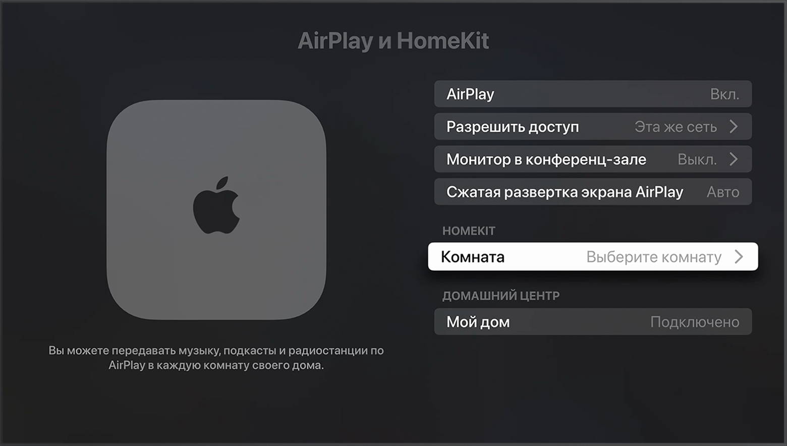 Добавление устройства Apple TV в приложение «Дом»
