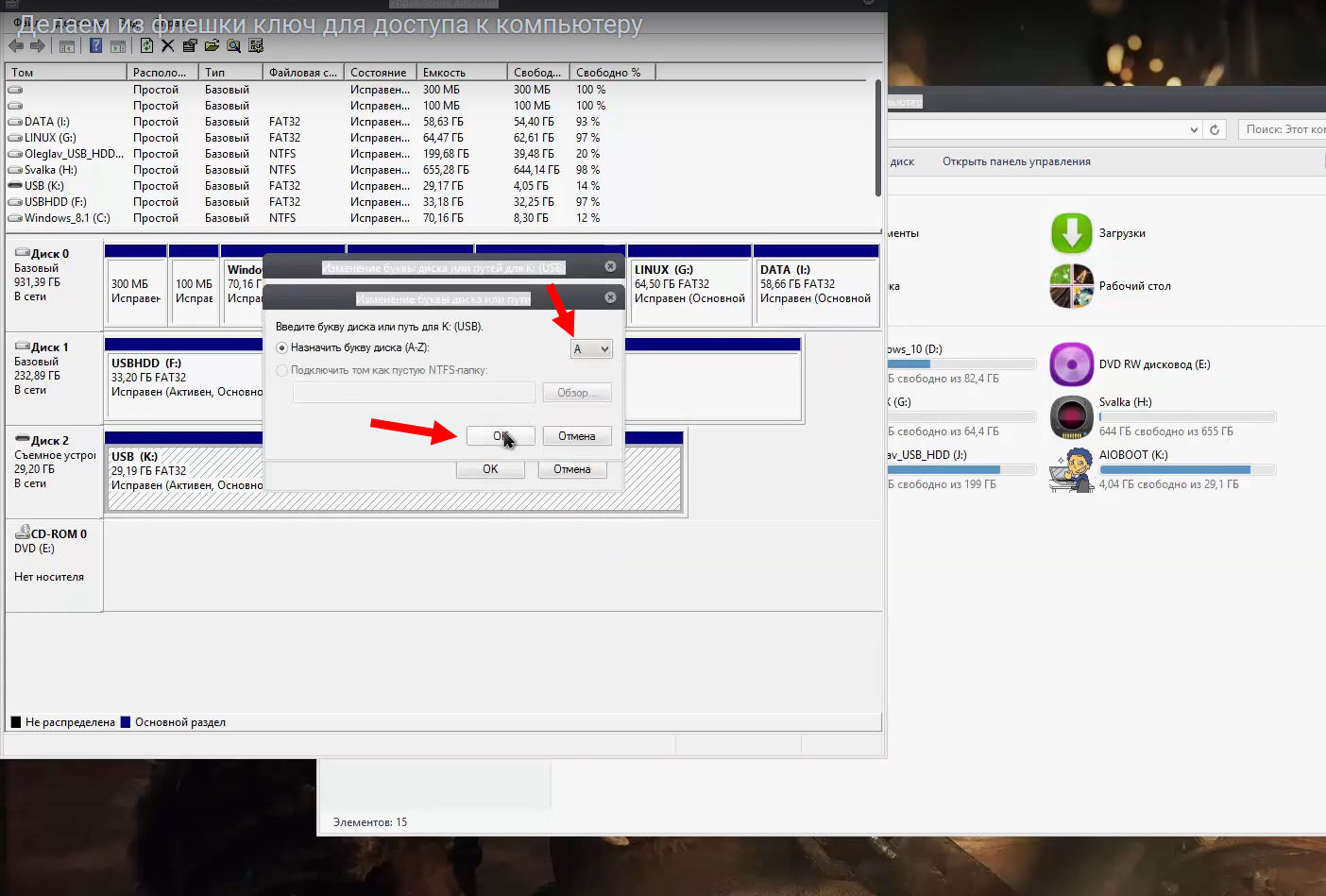 Тут нам для флешки, а точнее будущего usb защитника, нужно изменить букву на А.