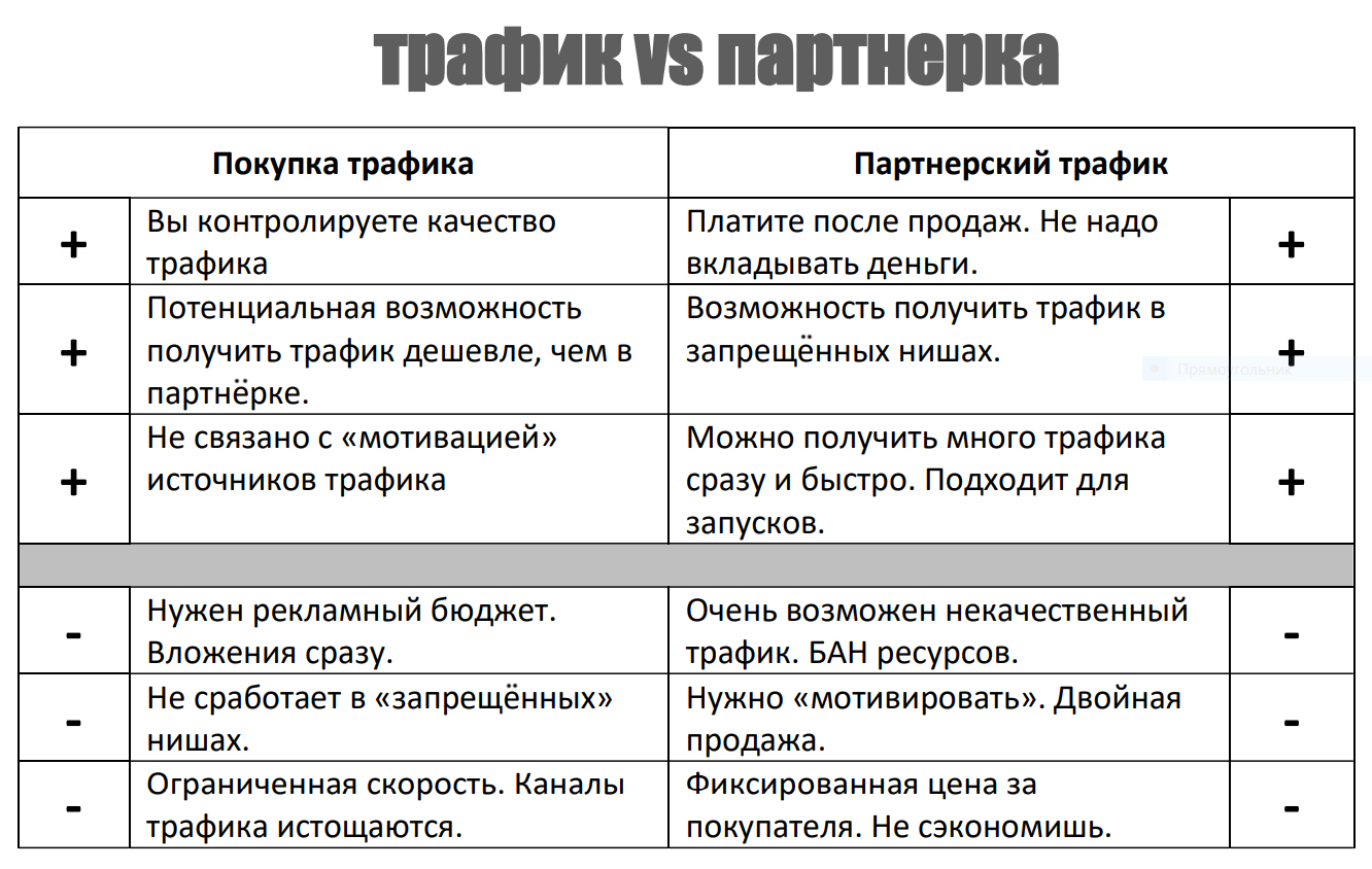 Вывод: если у вас нет 50-100 тыс. рублей на покупку платной рекламы, то с минусами партнёрского трафика придётся мириться.