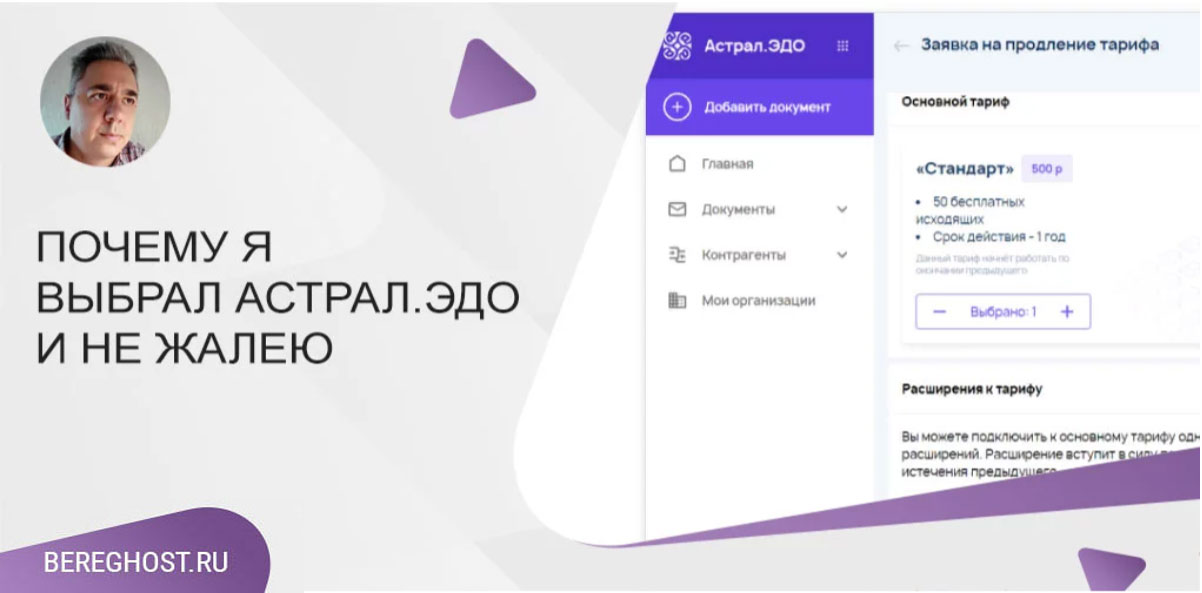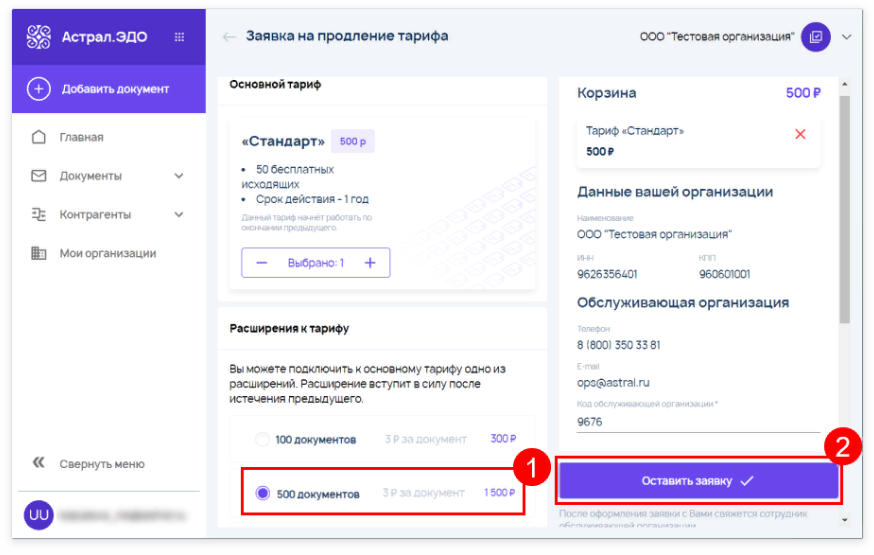 Астрал.ЭДО разумеется платный сервис. Стоимость пользования состоит из двух составляющих: тарифа и трафика. Для ИП на УСН достаточно тарифа «Стандарт», который стоит 500 рублей на 1 год. В тариф входит 50 исходящих документов. Если этого не хватит, то еще 100 исходящих можно докупить за 300 руб.