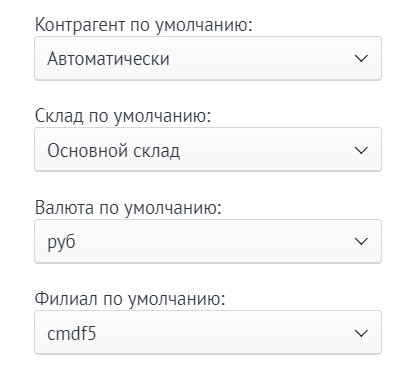 В настройках виджета можно указать Контрагента, Склад, Организацию и Валюту по умолчанию.